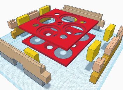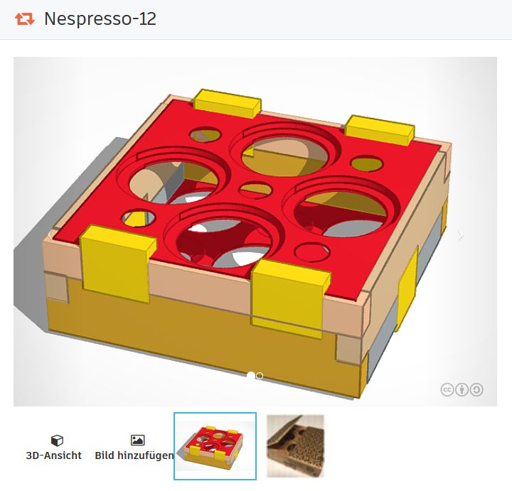 Also reifte die Idee zum Bau einer kleinen stabilen Reise-Box. Aber zuerst brauchte die Idee eine Gestalt. Neun Kapseln sollten für das Wochenende reichen. Im Koffer sollten die Kapseln geschützt sein. So wurde der platzsparende Entwurf dann auch. Fünf von oben und vier von unten passen hinein und das mit 10cm x 10cm x 4cm. Bei dem Bau sollte jetzt auch die neue CNC-Fräse zum Einsatz kommen. Für den 3D-Entwurf nutzte ich hier auf der Online Plattform von AUTODESK www.Tinkercad.com . Dieses Programm ist selbst für Kinder gut geeignet um die ersten Schritte in die 3D-Welt zu machen.