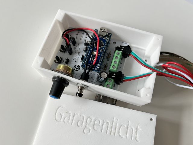 Zum Einsatz kommt die gleiche Leiterplatte wie beim vu-meter, nur das hier der Audiozweig nicht bestückt wird. Zwei Endlagenschalter melden den Torzustand (Offen/Geschlossen). Dafür waren ja auf der Platine bereits Steckpfosten eingeplant.